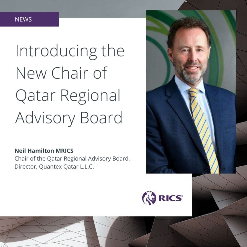 Mr. Neil Hamilton on his appointment as Chair of the RICS Qatar Regional Advisory Board, effective August 2025. We wish him every success in his new leadership role.